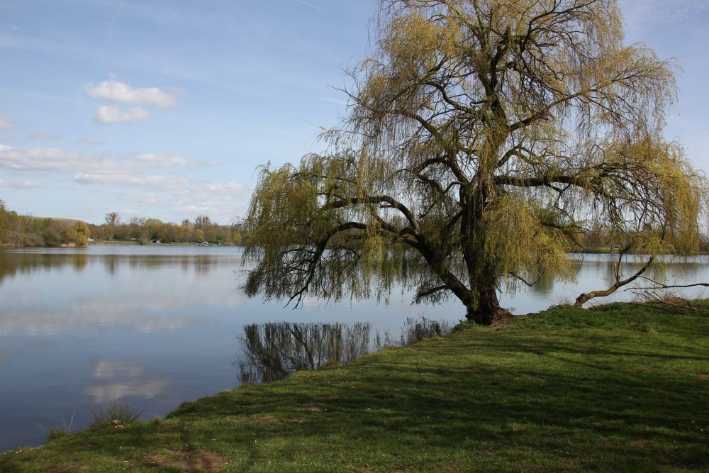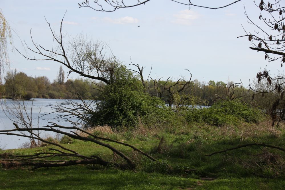 Zwischen See und Deich waren immer wieder Schilfflächen. Gelegentlich führten schmale Fußwege hindurch, über die man vermutlich bis an die Nordsee gelangen kann.