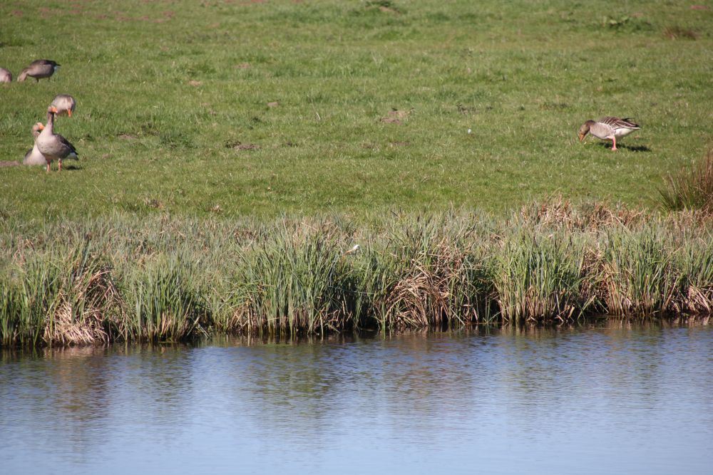 Hier – weitab der üblichen Routen – begegneten mir größere Gruppen von Weißwangengänsen, auch Nonnengänse genannt. Sie überwintern an der Nordsee.
