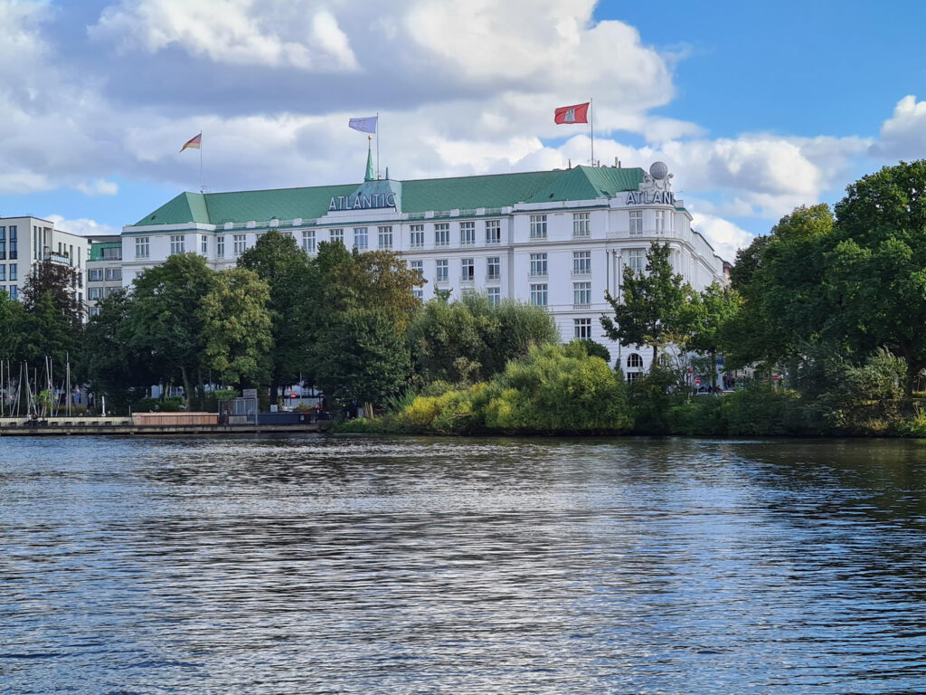 Später haben wir auf der Alster eine Bootsfahrt gemacht. Dabei kamen wir am Hotel Atlantic vorbei. Udo war leider nicht da, um uns zu begrüßen.