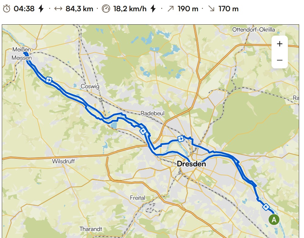 Weiter führte mich die Tour bis nach Meißen. Dort wechselte ich über die Brücke das Elbufer und radelte anschließend auf der rechten Seite flussaufwärts zurück.